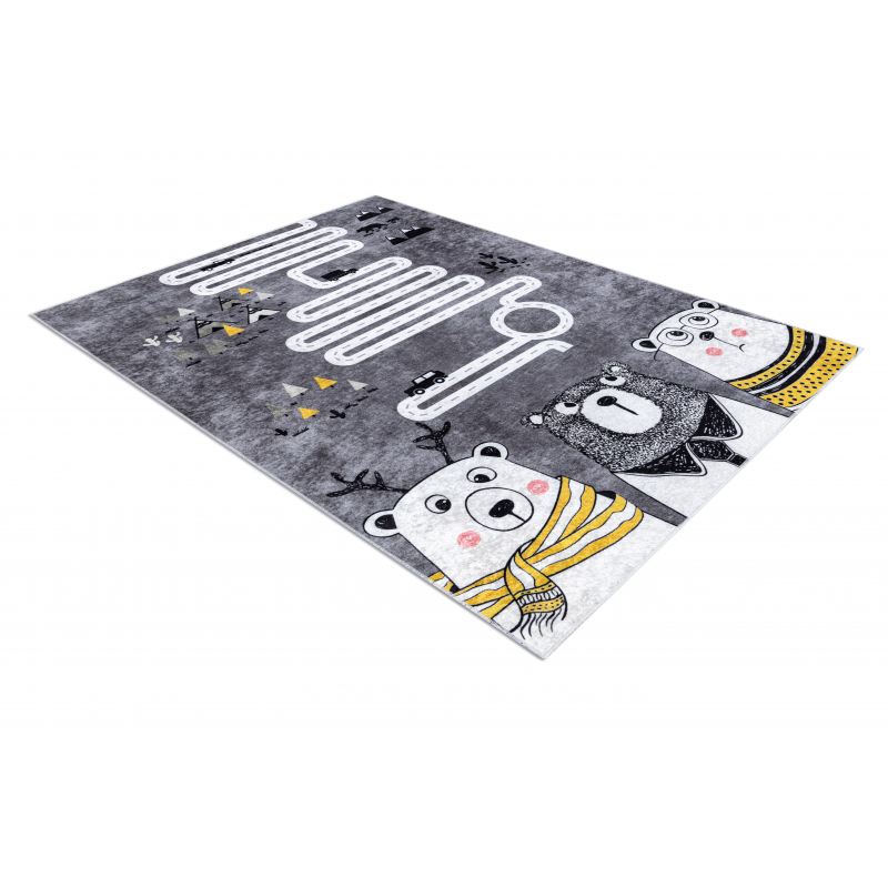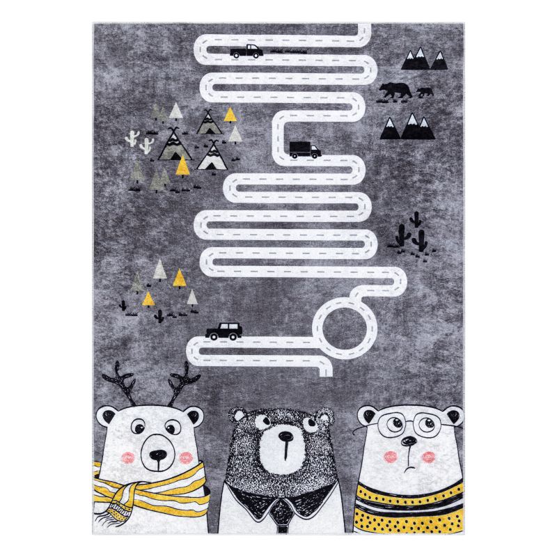 Dywan do prania JUNIOR 52107.801 Niedźwiedzie, zwierzęta, uliczki dla dzieci, antypoślizgowy - szary