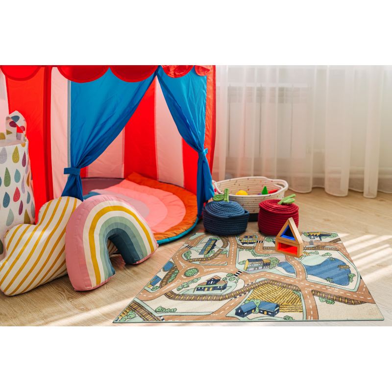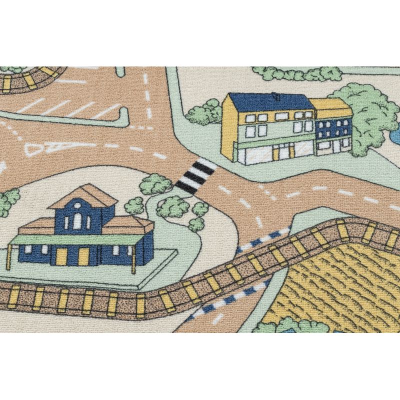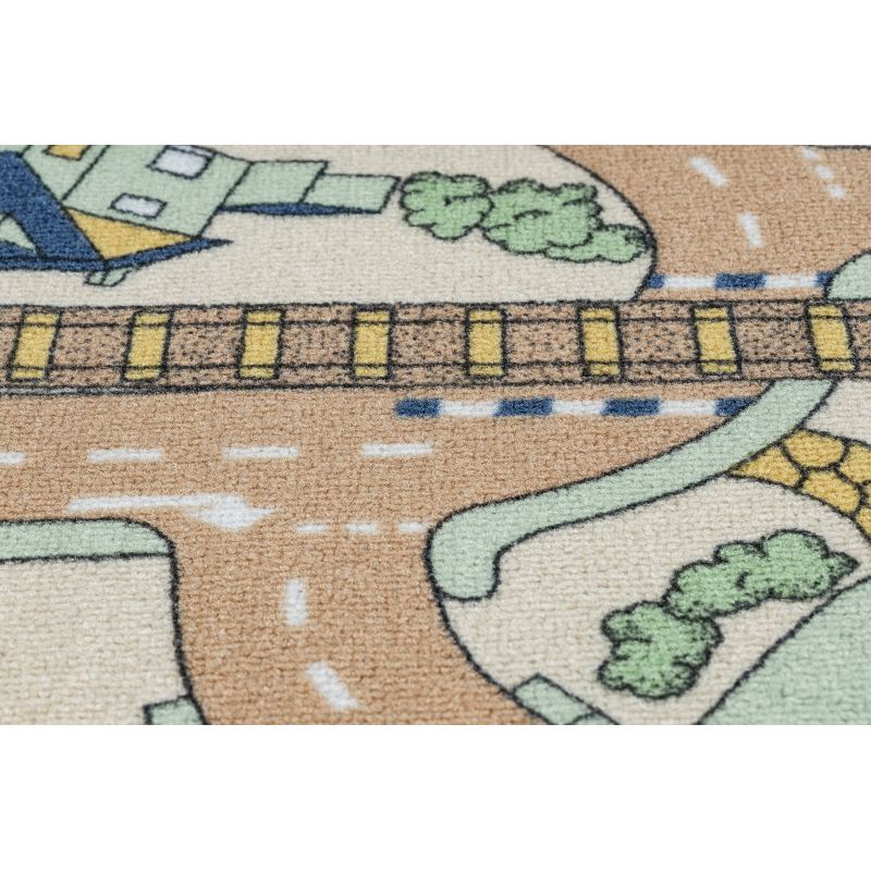 DYWAN REBEL ROADS Playtime 32 Miasteczko, dla dzieci antypoślizgowy - beż / zielony