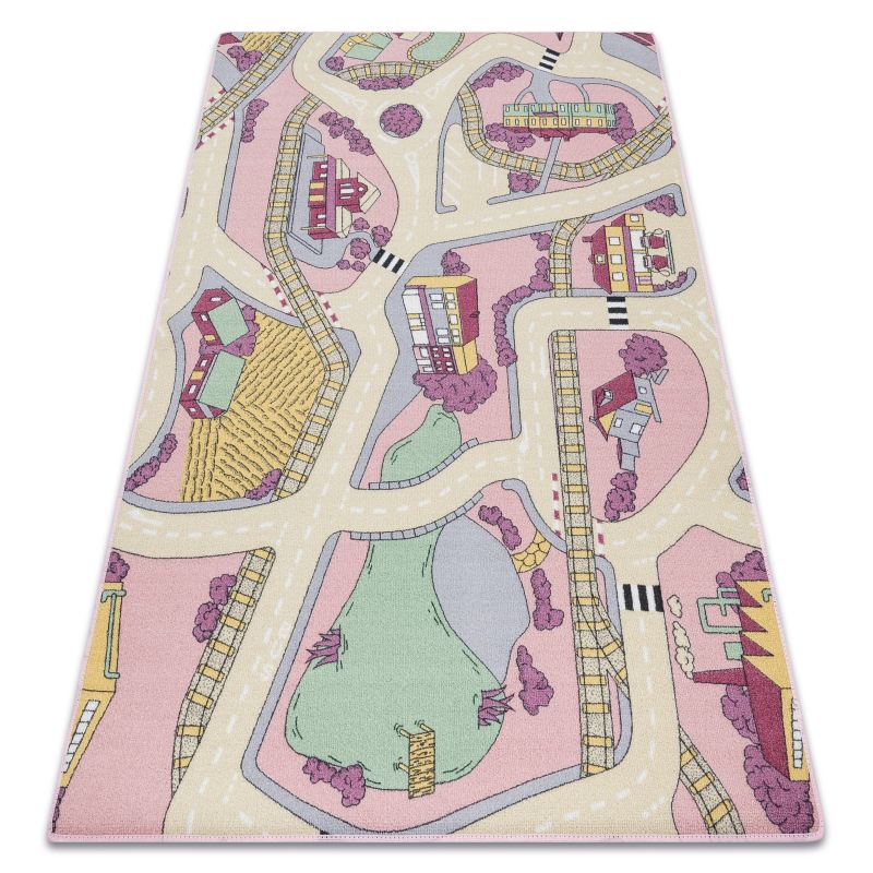 DYWAN REBEL ROADS Playtime 63 Miasteczko, dla dzieci antypoślizgowy - różowy / beż